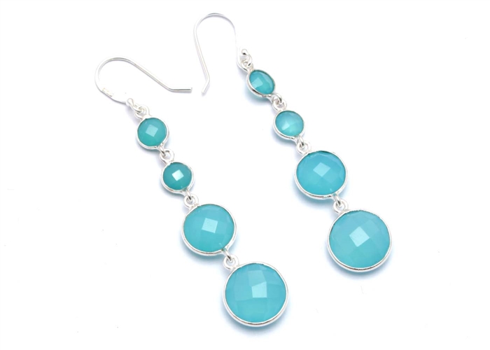 Sterling Silver With Aqua Chalcedony Cut Gemstone Earrings