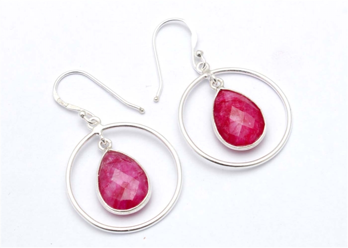 Sterling Silver With Dyed Ruby Cut Gemstone Earrings