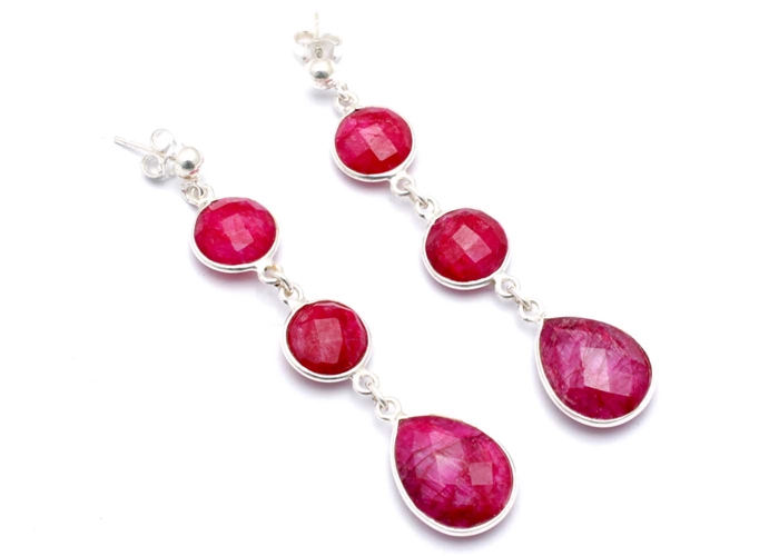 Sterling Silver With Dyed Ruby Cut Gemstone Earrings