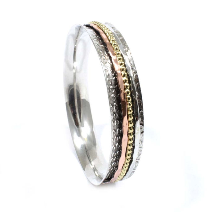 Sterling Silver With Brass and Copper Bangle