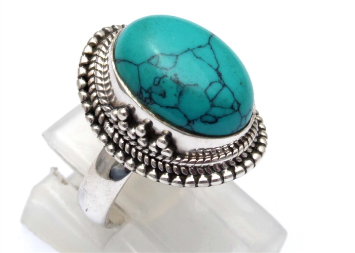 Sterling Silver With Synthetic Turquoise Cabochon Gemstone Ring