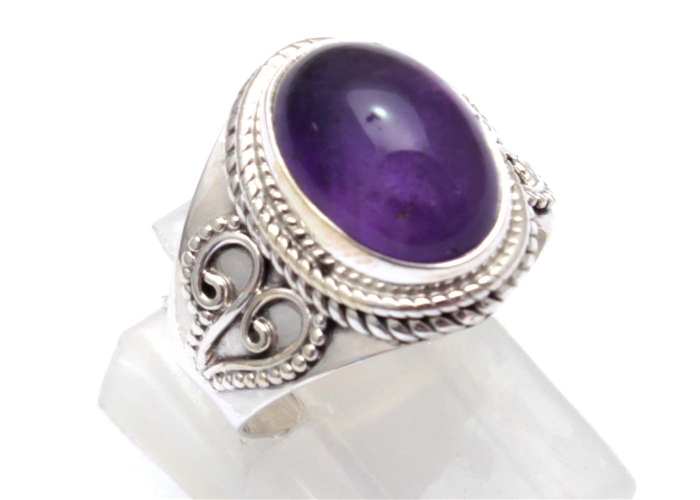 Sterling Silver With Amethyst Cabochon Gemstone Ring